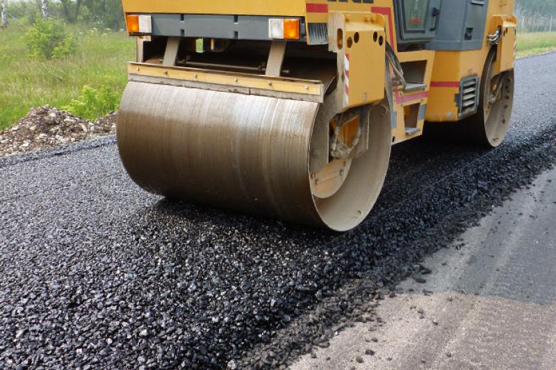 Укладка асфальтобетонной смеси укладчиком и ее уплотнение виброкатками