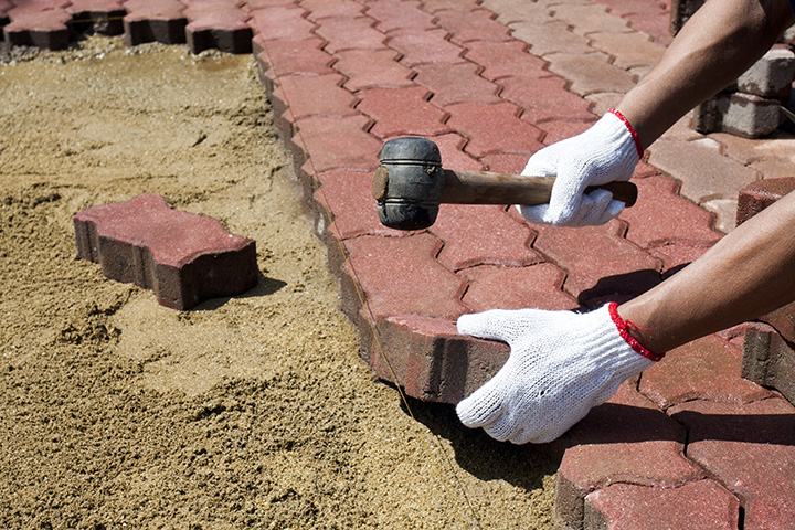 Укладка тротуарной плитки/брусчатки с последующим уплотнением